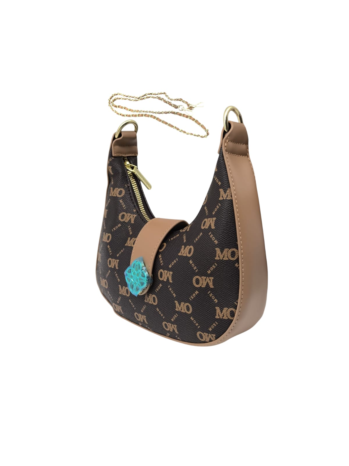 | Hardware Finish | Gold-tone (zippers, rings, strap clasps, bottom studs) |